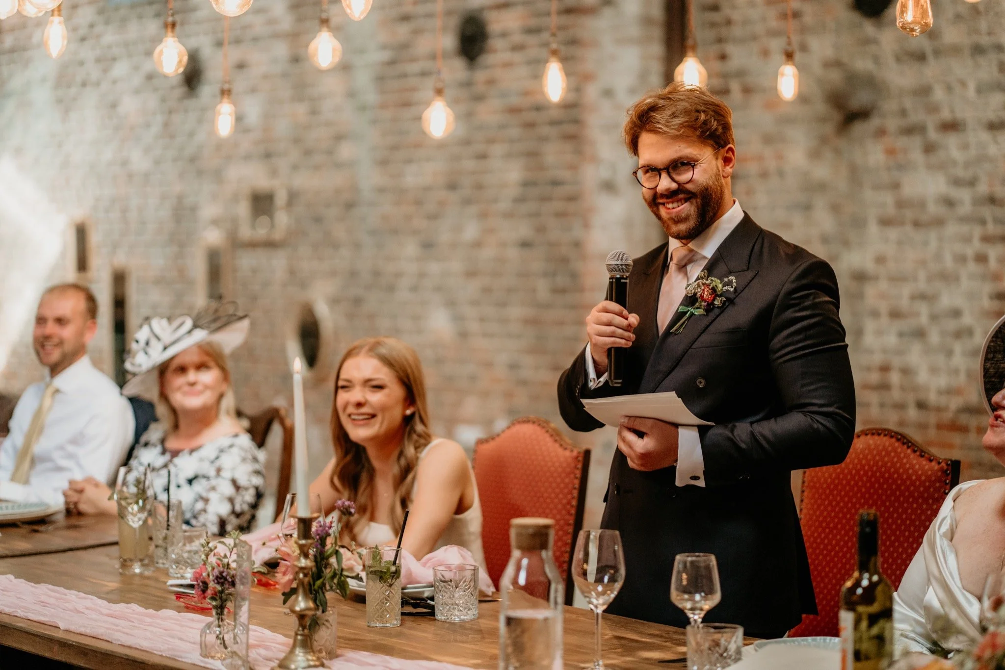 They were greeted with drinks and a huge cheer and the parted started, during the drinks reception we managed to capture the formal (and informal) group photos and watch on as guests enjoyed playing the garden games and basking in the summer sun. The guests then took their seats and enjoyed reading their personal messages that the couple had written on each photo at their place-setting. They welcomed the newlyweds to give speeches and the energy and joy in the room was electric - it was for the whole day really, providing one of the most exciting weddings to photograph for me too.