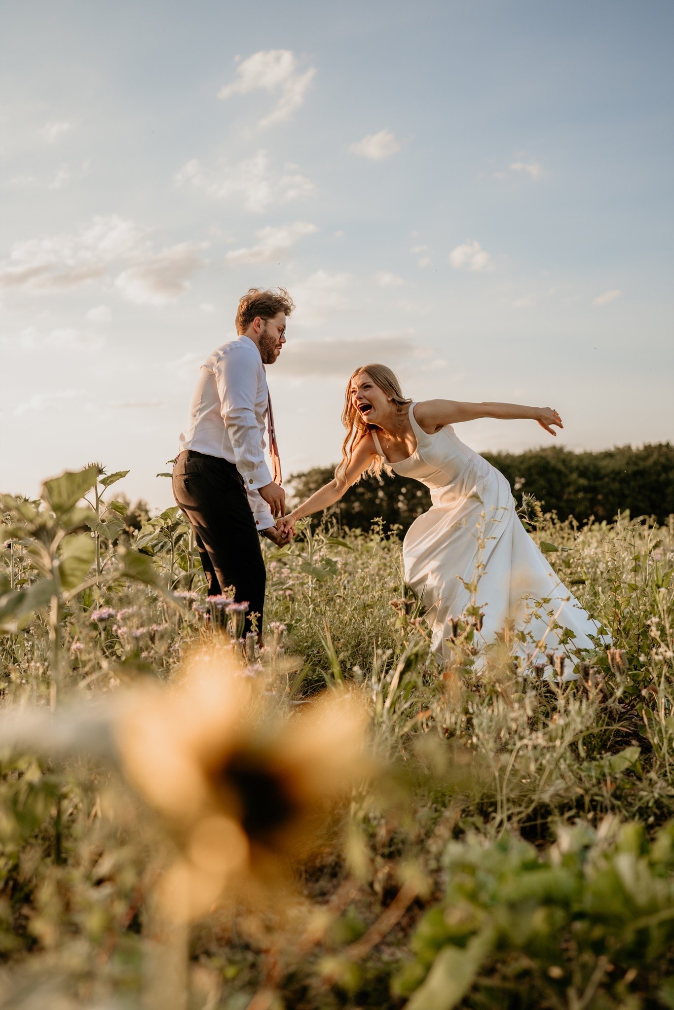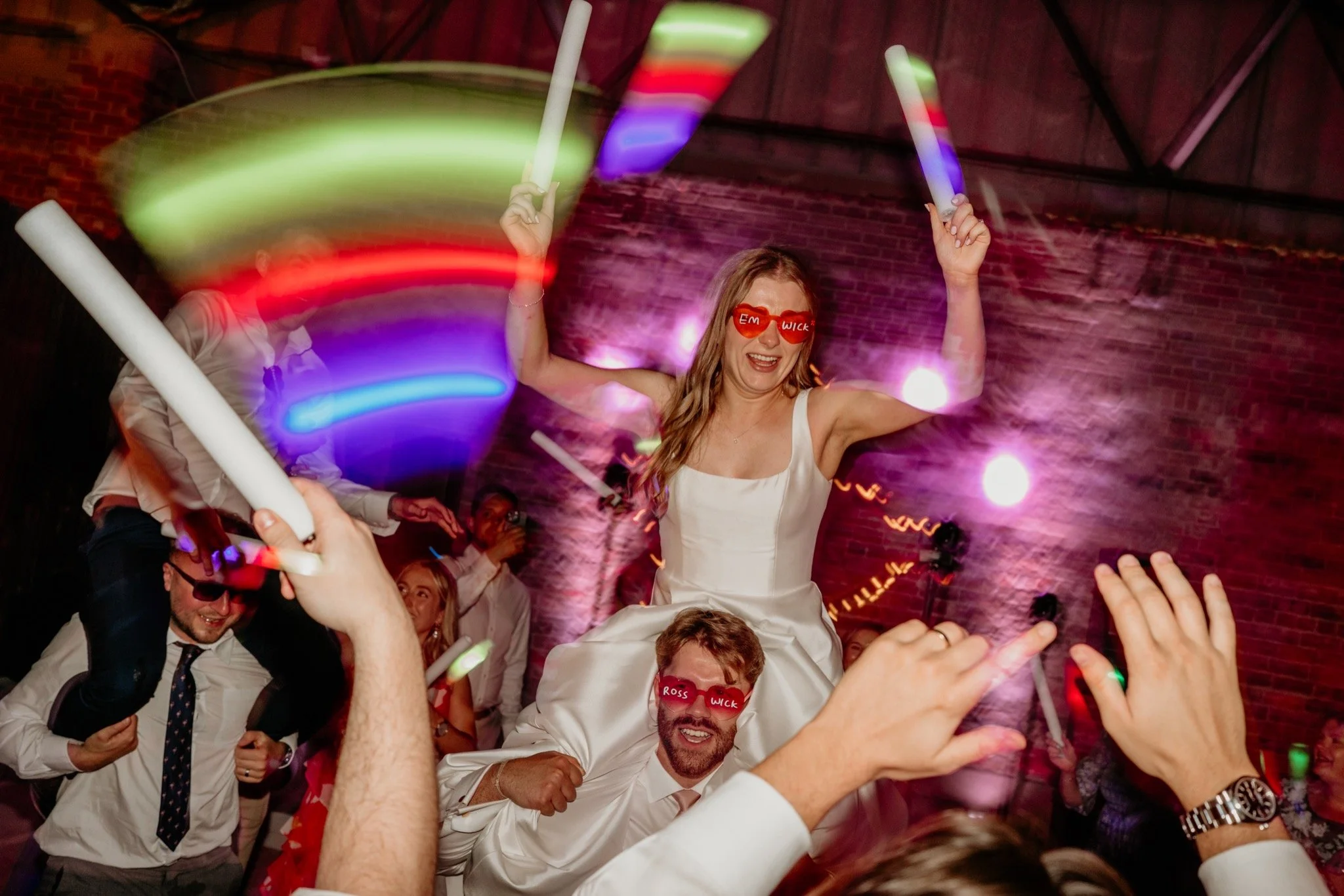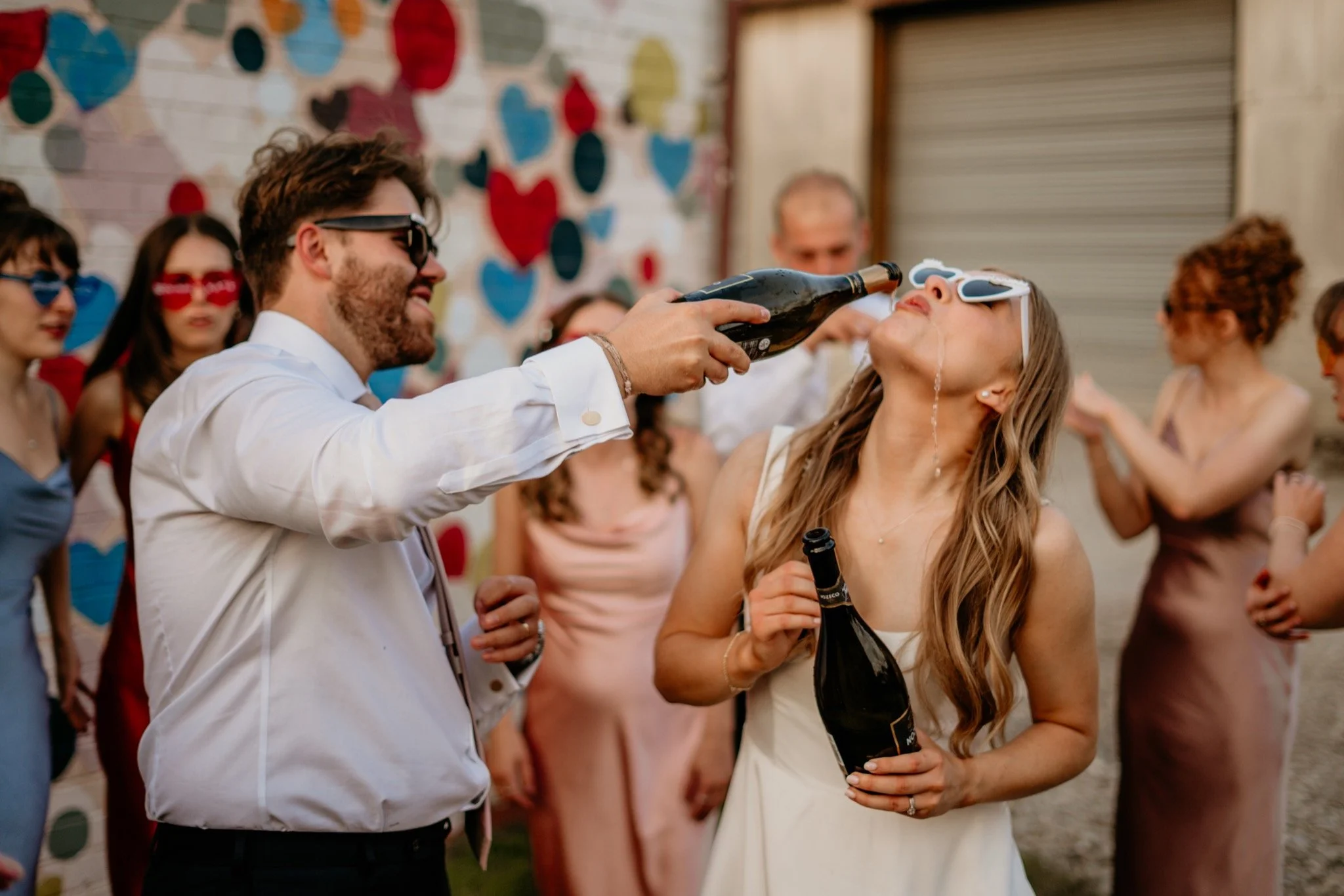 The rest of the day was so amazing - with space hopping, cocktail making and a whole heap of other activities, we took Emily and Ross away just before sunset for some more couple portraits and then finished with their bridal party joining them for a Champagne spray and some laughs before the evening exploded into a feast of colour and energy. The dance floor was packed and so animated and you couldn’t help but smile and join in - the only shame was I had to leave at some stage!